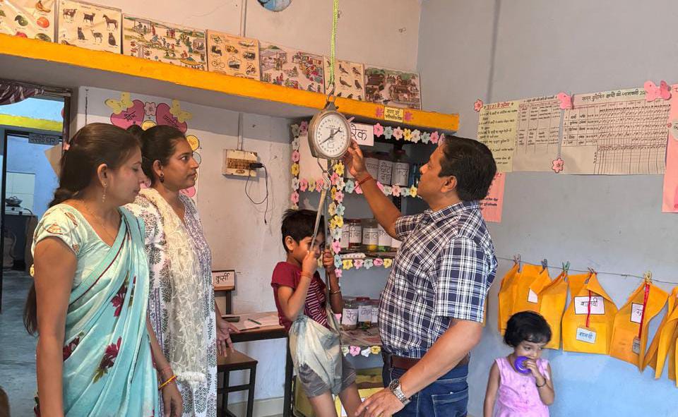 इस दौरान आयुक्त द्वारा आंगनबाड़ी केन्द्र के बच्चों का वजन एवं ऊंचाई मापा गया।आयुक्त लोकेश चन्द्राकर द्वारा आंगनबाड़ी केन्द्र के बच्चों के अलावा गर्भवती एवं शिशुवती माताओं से पौष्टिक खाद्य पदार्थों एवं टीकाकरण के संबंध में भी जानकारी रिपार्ट मांगी।इस अवसर पर आयुक्त ने आंगनबाड़ी केन्द्र में पोषण, ट्रैकर ऐप से डेटा चेक किया गया।बच्चो के वजन और हाइट दोनों इनक्रीज़ हुआ है।