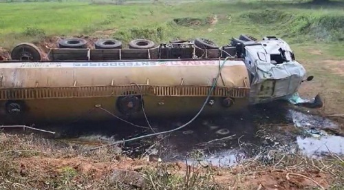 केमिकल से भरी ट्रक पलटी, ड्राइवर घायल