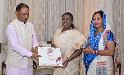राष्ट्रपति द्रौपदी मुर्मु को मुख्यमंत्री विष्णु देव साय ने उनके दो दिवसीय छत्तीसगढ़ प्रवास के दौरान की विभिन्न अवसरों पर ली गई छायाचित्र का एल्बम नवा रायपुर स्थित निवास कार्यालय में भेंट किया। राष्ट्रपति मुर्मु ने प्रसन्नता व्यक्त करते हुए कहा कि वर्तमान समय डिजिटल का है और फोटो डिजिटल रूप में तुरंत मिल जाती हैं। लेकिन आपने इतने सीमित समय में इसका एल्बम तैयार कर मुझे दिया है। आपने इस फोटो एल्बम के माध्यम से मेरे छत्तीसगढ़ प्रवास को चिरस्मरणीय बना दिया है।